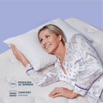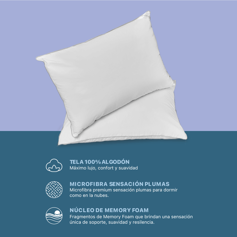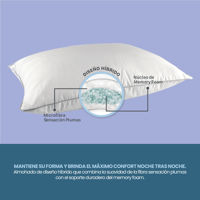 Almohada de diseño híbrido que combina la suavidad de la fibra sensación plumas con el soporte duradero del memory foam.