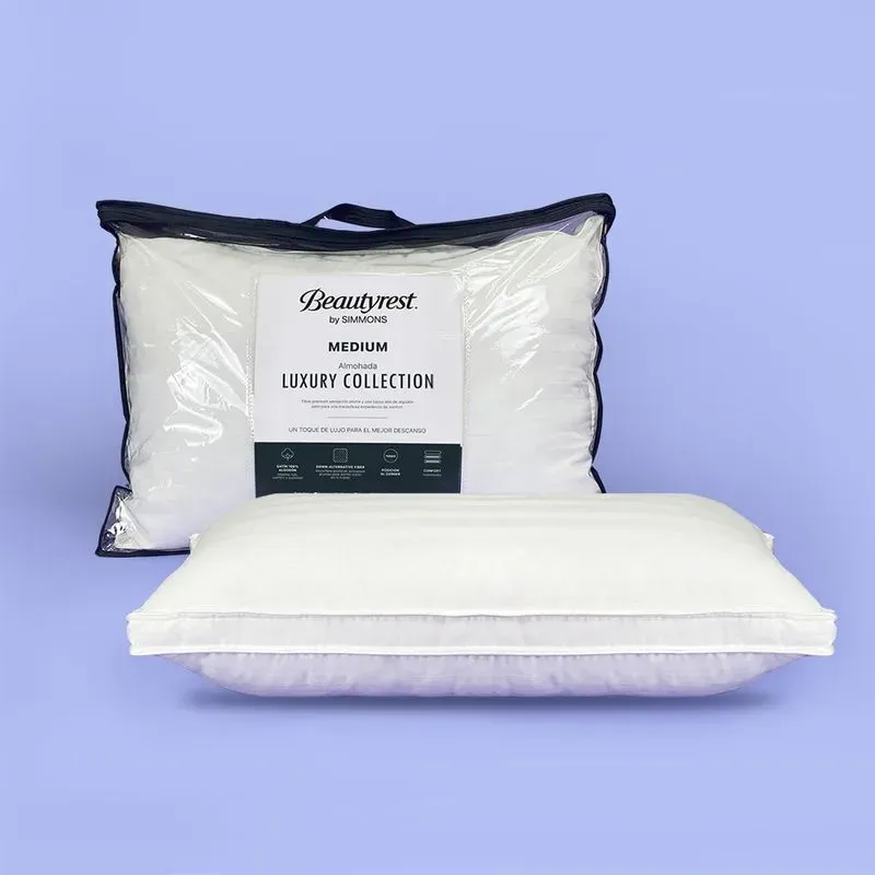 Fibra premium sensación pluma y una lujosa tela de algodón satín para una maravillosa experiencia de confort. Confort intermedio. Ideal para dormir en todas las posiciones.