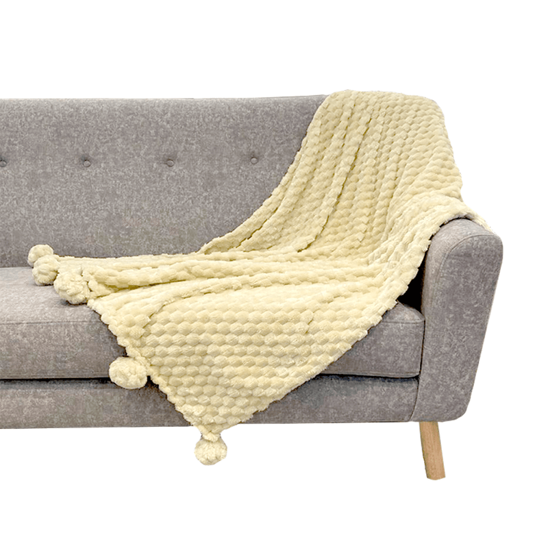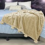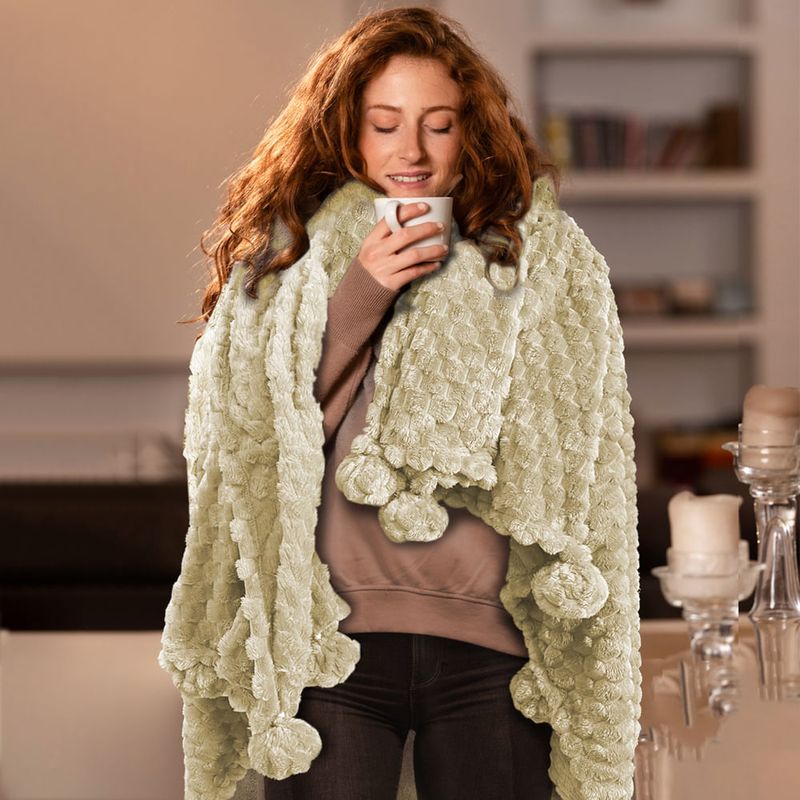 El diseño a cuadros aporta un toque clásico y atemporal, mientras que los pompones añaden un elemento de encanto juguetón y sofisticado. La microfibra utilizada en la confección garantiza durabilidad y facilidad de cuidado, proporcionándote una cobija que no solo es hermosa, sino también práctica.