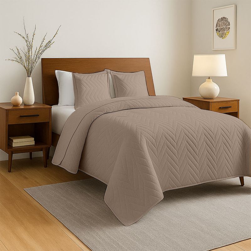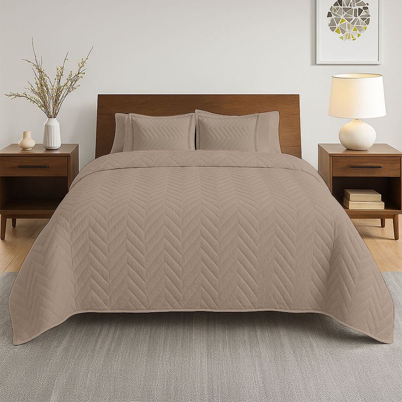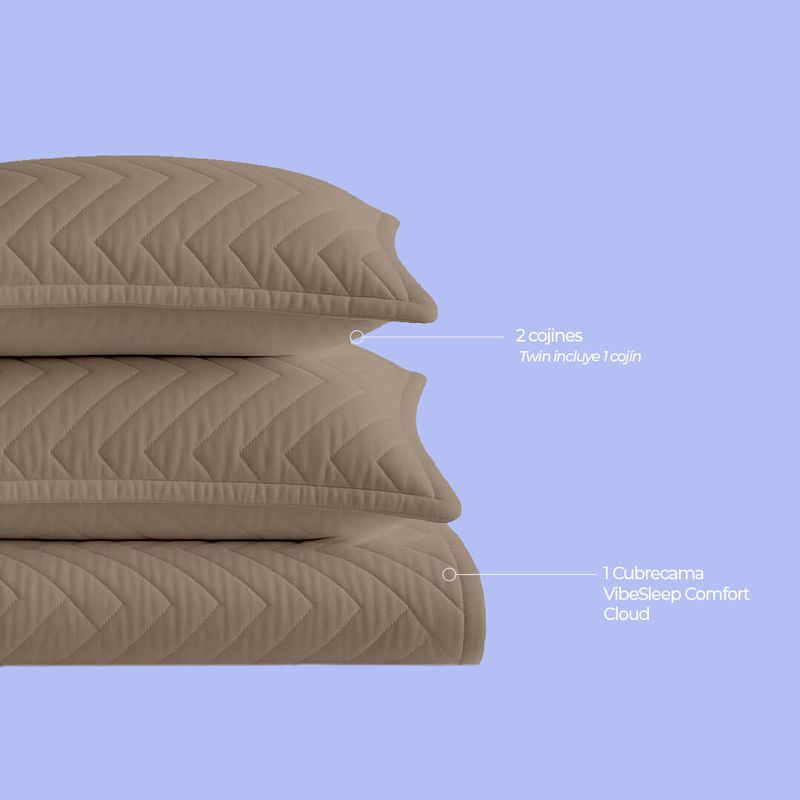 El cubrecama "VibeSleep Comfort Cloud" es sinónimo de elegancia, comodidad y practicidad. Está confeccionado con una tela de poliéster al 100%, con un gramaje de 90 gramos, que le confiere una textura ultra delgada y ligeramente texturizada.