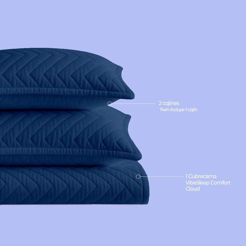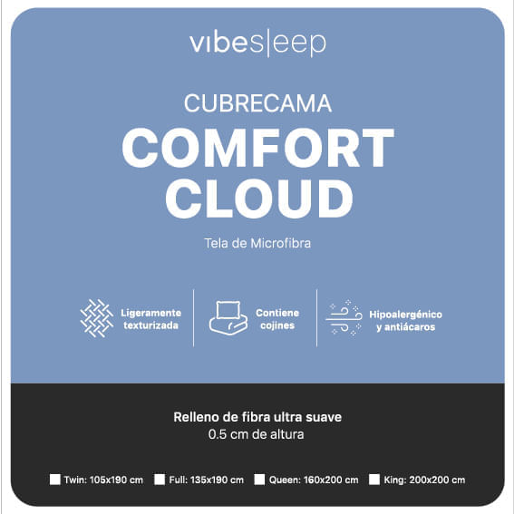 El cubrecama "VibeSleep Comfort Cloud" es sinónimo de elegancia, comodidad y practicidad. Está confeccionado con una tela de poliéster al 100%, con un gramaje de 90 gramos, que le confiere una textura ultra delgada y ligeramente texturizada.
